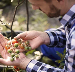 We bring you the harvest collected from the garden and field, accompanied by carefully prepared crates.